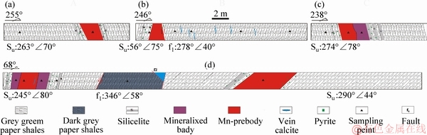 Figure 3 Representative sketch maps of Qujiashan manganese deposit