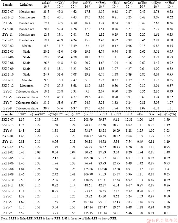 Table 2 Rare-earth element compositions of ores and wall rocks in Qujiashan manganese deposit
