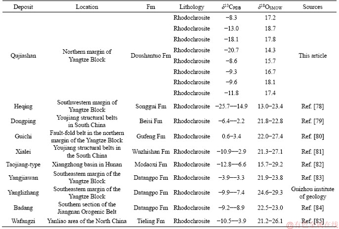 Table 4 Summary of carbon and oxygen isotopic compositions of ores from representative manganese deposits in Yangtze Block