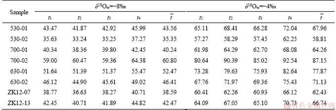 t3=16.9-4.38×(δ18OC-δ18OW)+0.1×(δ18OC-δ18OW)2 (3)