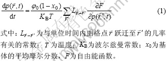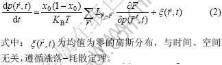 微观扩散方程实际为 Cahn-Hilliard 扩散方程的微观离散格点形式,它以原子占据晶格位置的几率为场变量来描述原子组态和相形貌。据 Onsager 扩散方程可知,几率的变化率与热力学驱动力成正比,即[7]