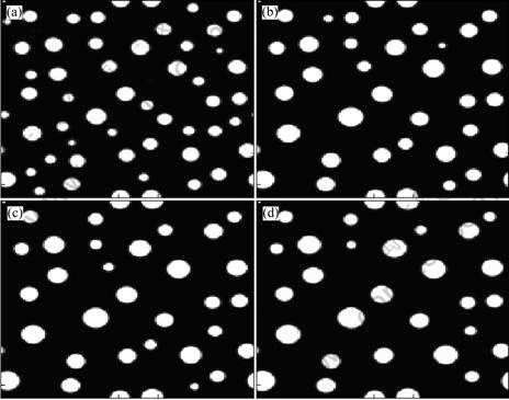 Fig.1 Microstructure evolution of precipitates coarsening at B*=0: (a) t*=130, (b) t*=260, (c) t*=360, (d) t*=460