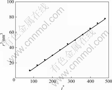 图2 B*=0 时沉淀相颗粒半径的立方随时间的变化曲线