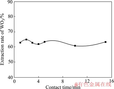 图2 混合季铵盐为萃取剂时WO3萃取率与接触时间的关系