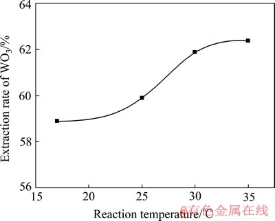 Fig. 3 Relationship between extraction rate of WO3 and reaction temperature with mixed quaternary ammonium salt as extractant