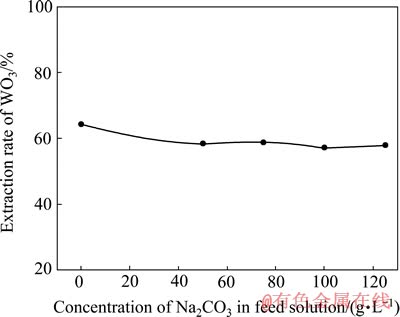 Fig. 4 Influence of concentration of Na2CO3 in feed solution on extraction rate of WO3 in extraction process using mixed quaternary ammonium salt as extractant
