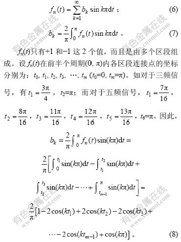 通过对式(1)~(5)及图2~4进行分析,发现伪随机n频波是奇函数,只要求出它在半个周期内的表达式,就可以知道它在整个周期上的表达式。对于伪随机n频波,n的取值越大,波形中的间断点就越多。例如,伪随机双频波、三频波、四频波、五频波、七频波、九频波的间断点分别为3,4,10,12,40和140个。