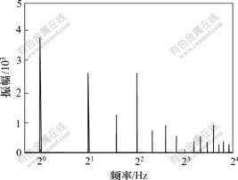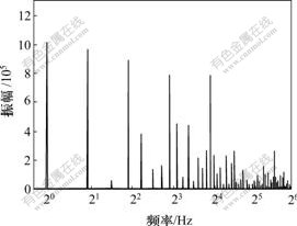 通过对三频波和五频波的频谱计算可以发现(见图5和图6):伪随机多频信号波形振幅的主要能量集中在数个主频上,并在对数坐标上均匀分布。