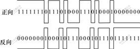 在VHDL硬件描述语言中,用有限状态机设计(FSM)可以产生任意波形。根据式(2),以其最小区间长度T/25(T为周期)为单位对波形进行状态编码(1表示导通,0表示截止),得到如图7所示的供电主回路电桥正向和反向导通的2个控制编码序列。这2个控制编码序列是互补的,因而,只要产生其中1个编码序列,求反后就可得到另一个编码序列。
