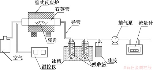 已有的研究证明利用管式炉可以有效模拟焚烧炉中重金属的高温挥发特性[15]。在本实验装置上,飞灰热处理时产生的重金属的挥发物大部分被吸收液所吸收,其余少量会附着在石英管出口处和引出导管内壁上,为提高实验的准确性,每一实验工况完成后需用少量的吸收液冲洗石英管及导管内壁,然后进行下一个工况实验。