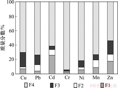 Fig. 2 Mass fraction of each step extraction quantity metals in total metals of fly ash