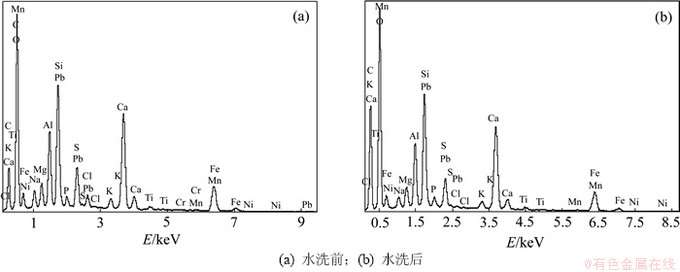 Fig. 5 EDS photographs of fly ash before and after water washing