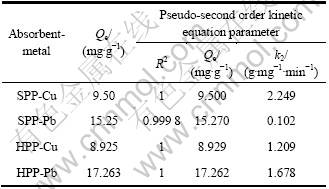 3) 动力学的研究结果表明:SPP和HPP对Cu2+、Pb2+的吸附动力学符合准二级动力学模型。