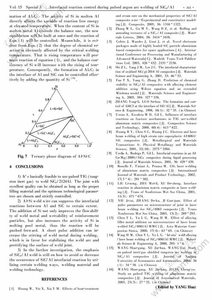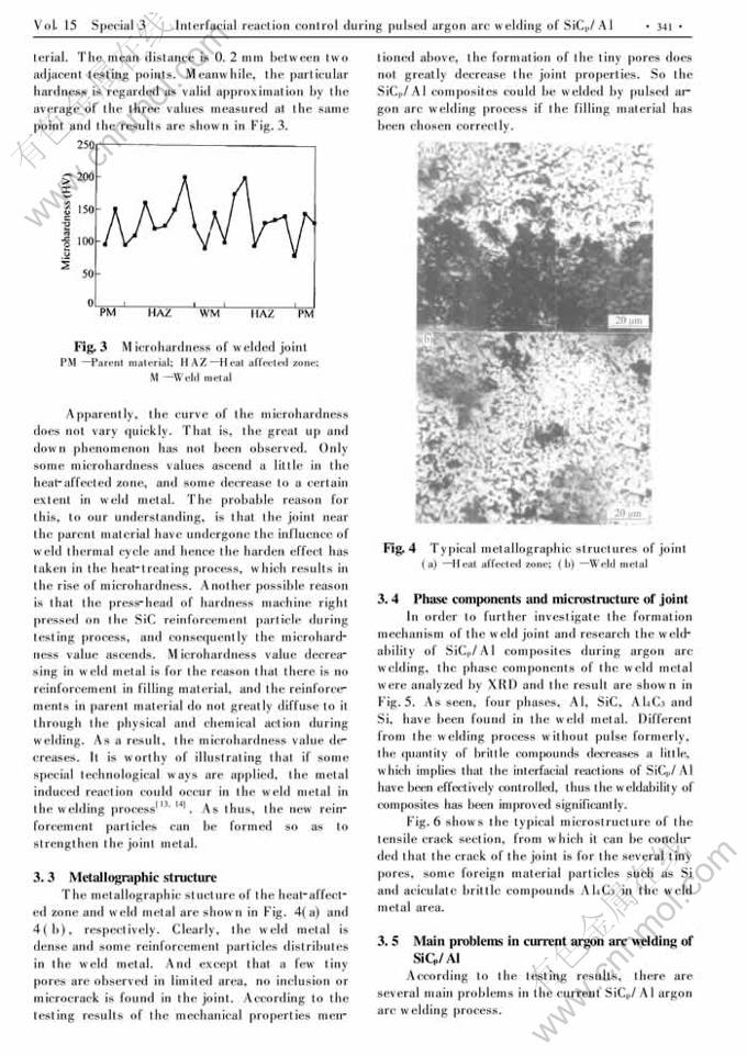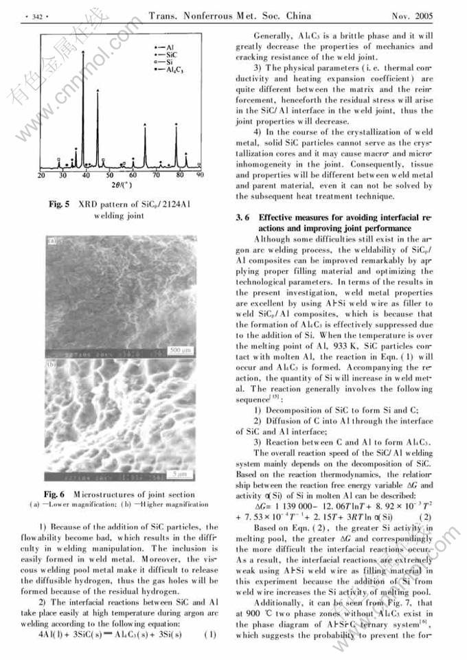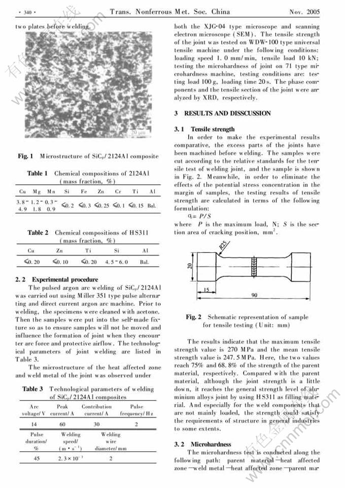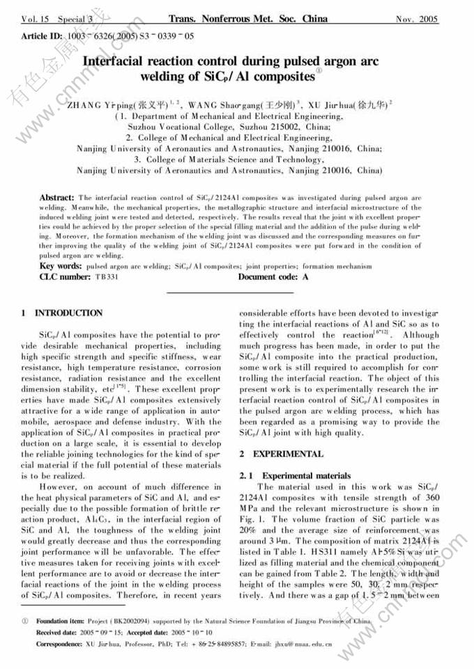 Key words:pulsed argon arc welding; SiCp/Al composites; joint properties; formation mechanism