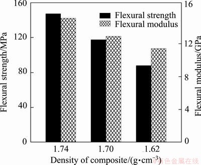 Fig. 4 Flexural strength and modulus of composites with different density at deposited state