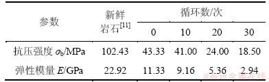 Table 2 Results of uniaxial compressive testing of granite after different cycles of freezing and thawing
