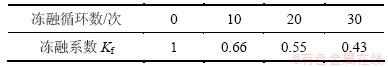 表4 风化花岗岩冻融系数与冻融循环次数的关系