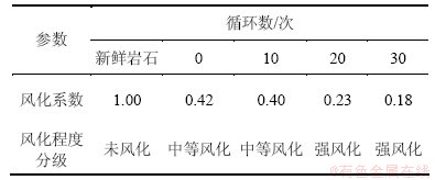 Table 5 Weathering degree coefficient and its classification of granite under freezing and thawing cycles