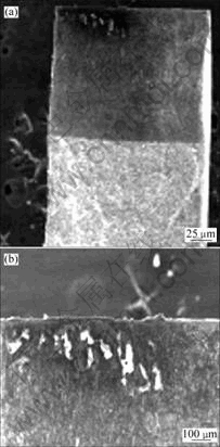 Fig.2 Morphology and depth of crack: (a) General view; (b) Enlarged view near surface