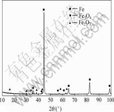 由于高温铝液与铸轧辊表面金属铁相互作用可能形成较脆的铁铝化合物,这对裂纹形成及扩展机理有显著影响。为分析是否形成铁铝化合物,对铸轧辊裂纹表面(图3)进行X射线衍射分析,其结果如图5所示。由图可知,XRD谱中没有发现铁铝化合物存在,证明铝液对铸轧辊表面的侵蚀作用较弱,其侵蚀作用对裂纹萌生和扩展影响不大。