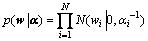 are zero. The sparsity of model is based on a hierarchical prior, where an independent Gaussian prior is defined on the weight parameters in the first level: