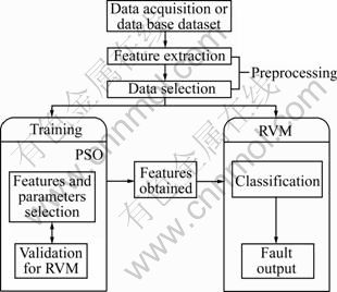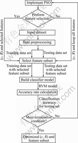 Fig. 1 PSO based parameters determination and feature selection approach for RVM