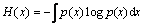 The definition of entropy for a discrete-valued random variable can be generalized for continuous- valued random variables and vectors, often called differential entropy. The differential entropy H of a random variable x with density p(x) is defined as [17]