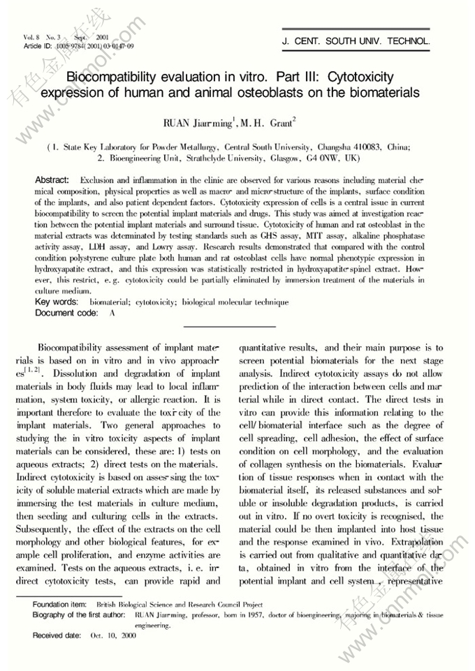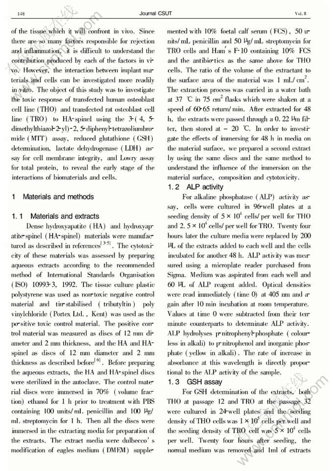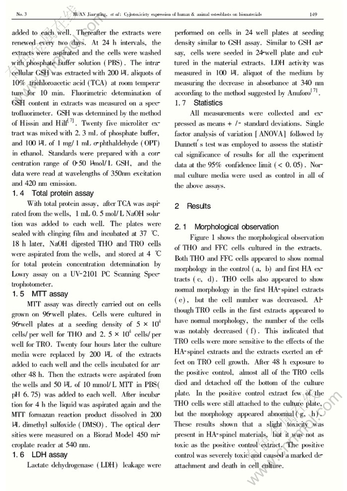 Key words:biomaterial; cytotoxicity; biological molecular technique