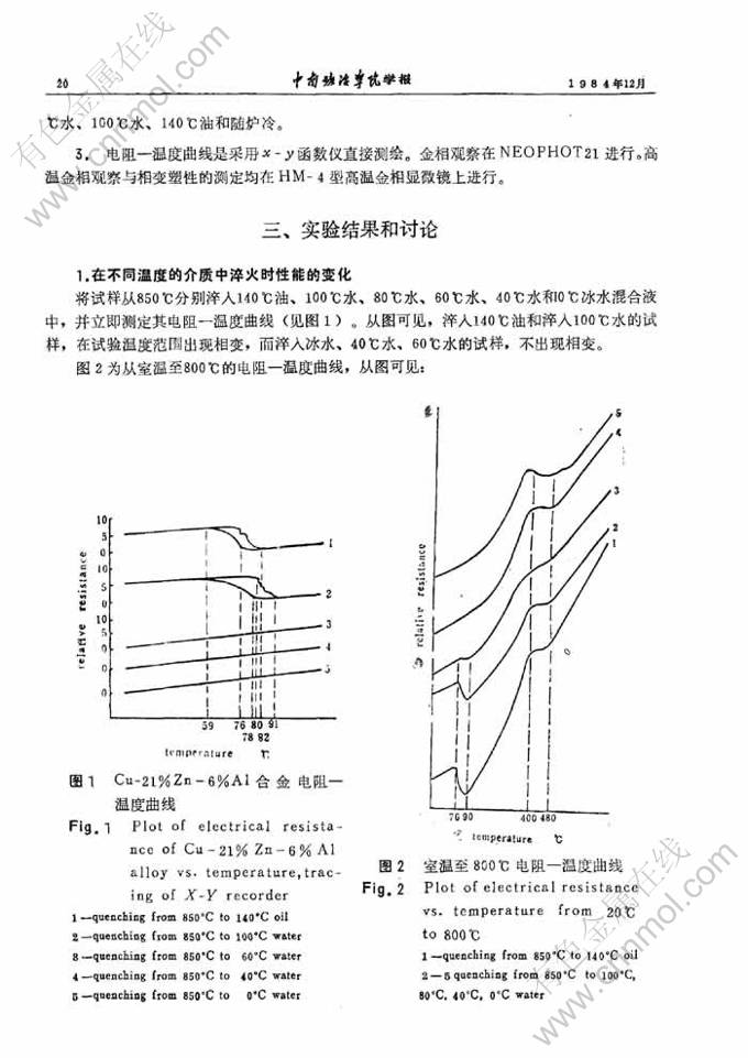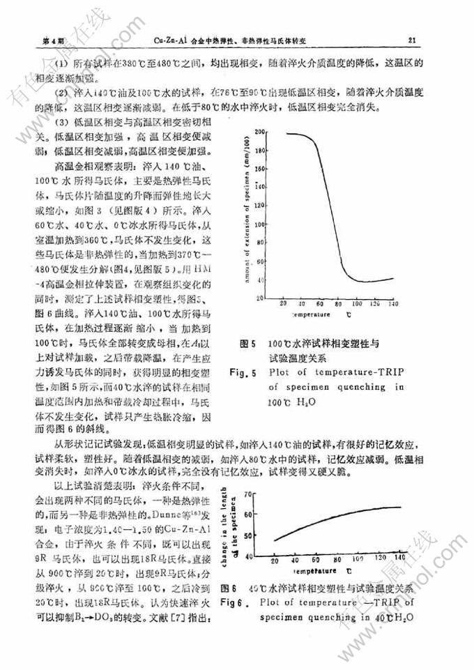 关键词:热弹性马氏体相变; 马氏体转变; 温度曲线; 相变塑性; 高温金相观察; 热弹性马氏体稳定化; 记忆合金; 淬火条件; 试样; 电阻