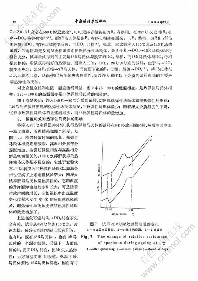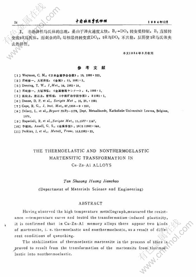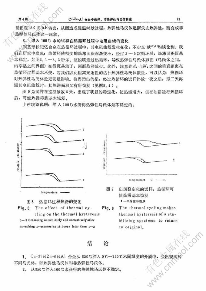 Cu-Zn-Al合金中热弹性、非热弹性马氏体转变