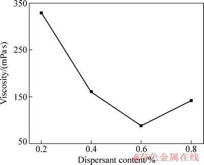 Fig. 2 Influence of dispersant content on viscosities of PZT suspensions