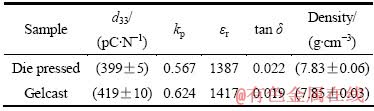 Table 1 Comparison of properties of gelcast PZT samples and die pressed ones