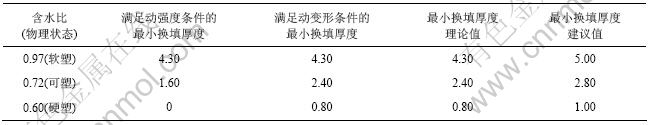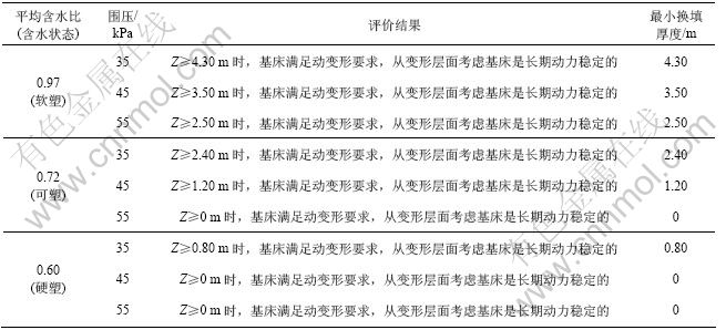 (3) 从动强度考虑,维持软塑红黏土基床长期动力稳定的最小基床换填厚度为4.30 m,可塑红黏土为