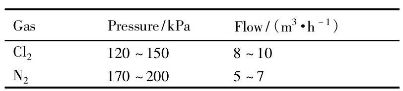 表5 氯气和氮气控制参数Table 5 Control parameters of Cl2and N2 下载原图