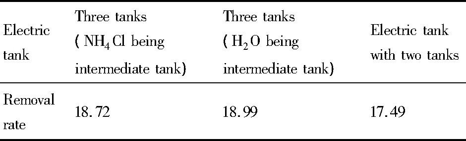 表2 电解槽结构对氯化铵去除率的影响Table 2Influence of electrobath structure on NH4Cl wastewater removal rate (%) 下载原图