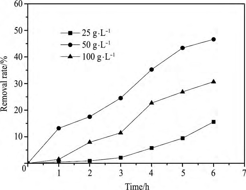 图4 氯化铵初始浓度对去除率的影响Fig.4Influence of NH4Cl concentration at NH4Cl wastewater removal rate