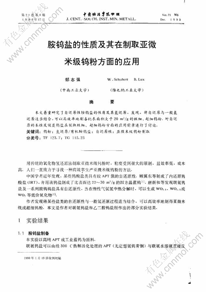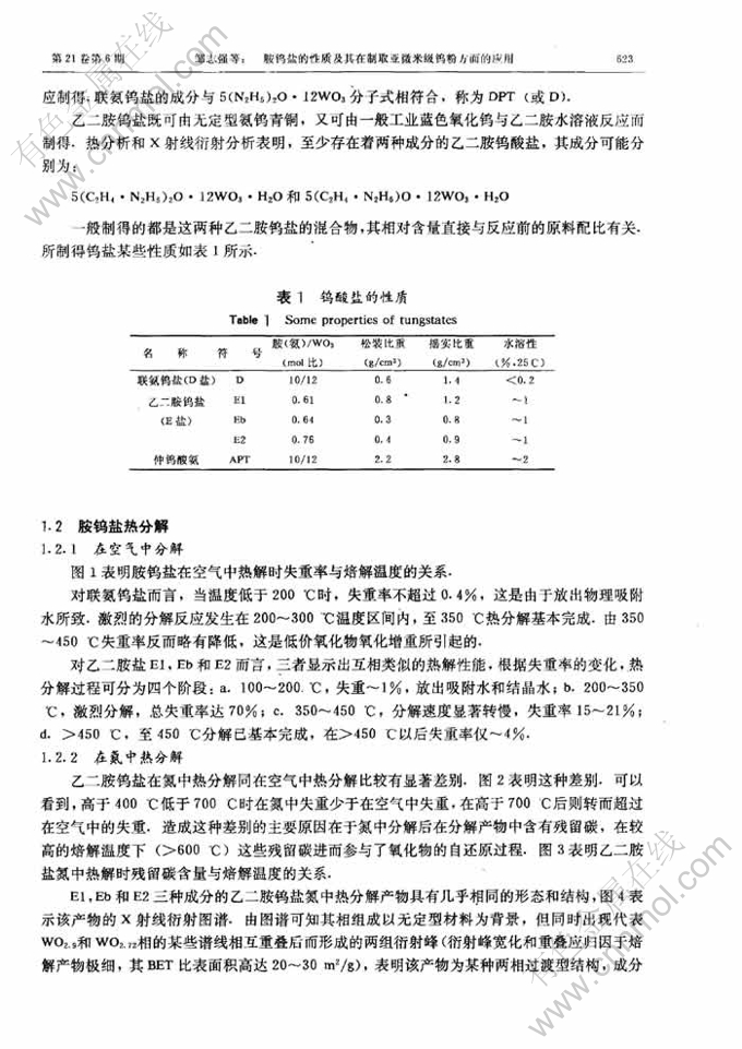 胺钨盐的性质及其在制取亚微米级钨粉方面的应用
