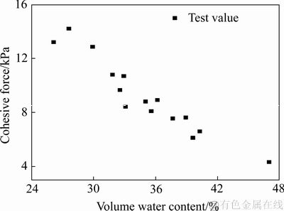 式中:c为黏聚力;θ为体积含水率;a和b为拟合参数,a=-2.40,b=1.78,相关系数为0.95。