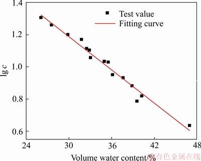 Fig. 9 Relationship between ore body leaching rate and volume water content