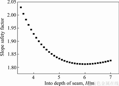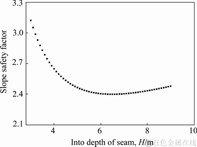 Fig. 17 Change law of slope safety factor with depth of entering seam
