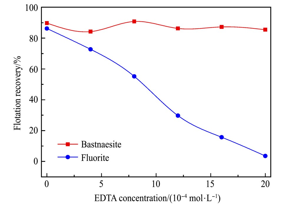 Fig.4 Flotation recovery of bastnaesite as a function of EDTA concentration