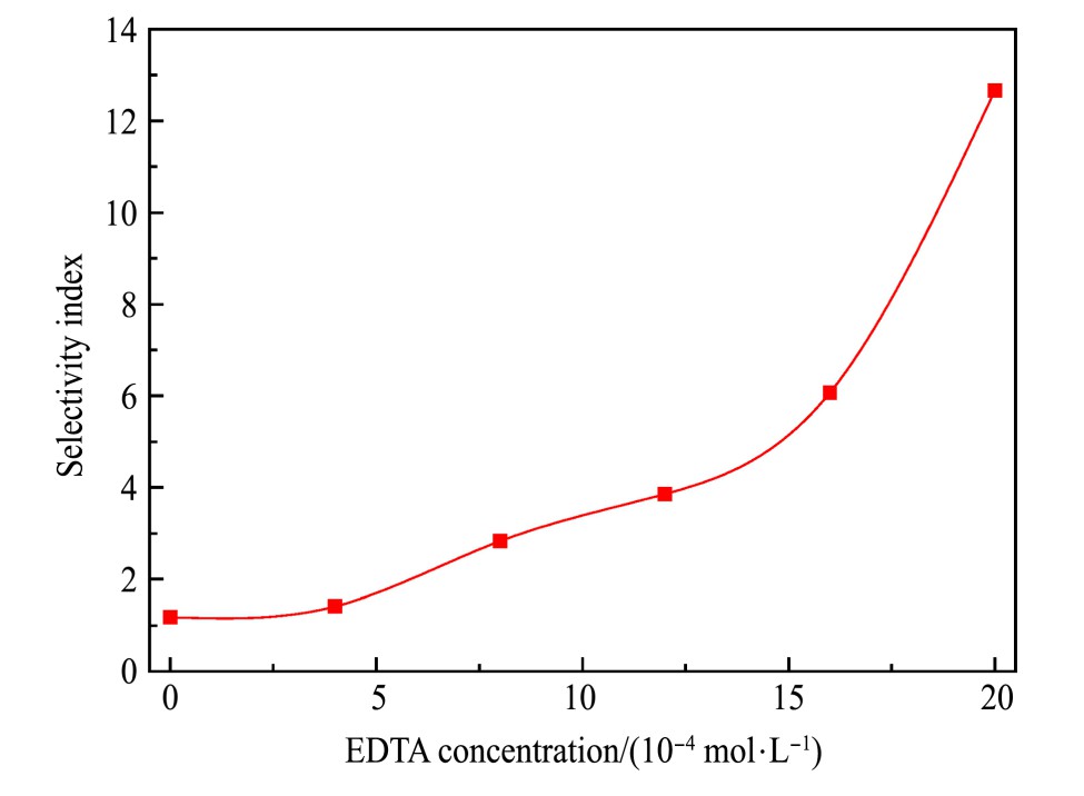 Fig.7 Separation index between bastnaesite and fluorite from 1∶1 mixed minerals as a function of EDTA concentration