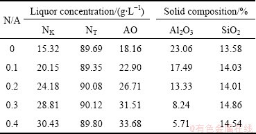 Table 4 Leaching results of clinkers at different N/A ratios in sodium carbonate solution