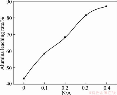 Fig. 4 Effect of N/A ratio on alumina leaching rate of clinkers