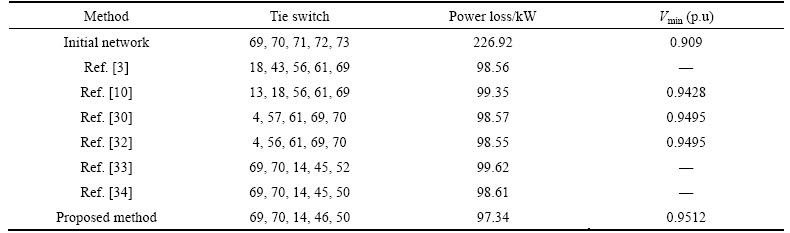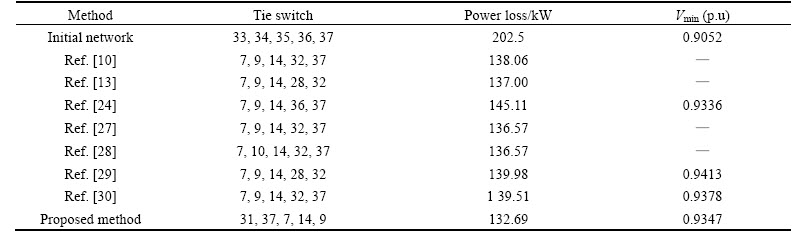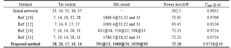 Table 4 Comparison of different methods for case 2 (only reconfiguration) in 33-bus system