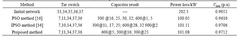 Table 6 Comparison of different methods for case 4 (reconfiguration and capacitor allocation) in 33bus system