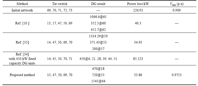 Table 5 Comparison of different methods for case 3 (reconfiguration and DG allocation) in 33-bus system