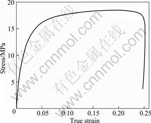 Fig. 3 Stress—strain plot for Pb-0.08Ca-2Sn alloy cold rolled to a thickness reduction of 75% with strain rate of 2×10-4 s-1