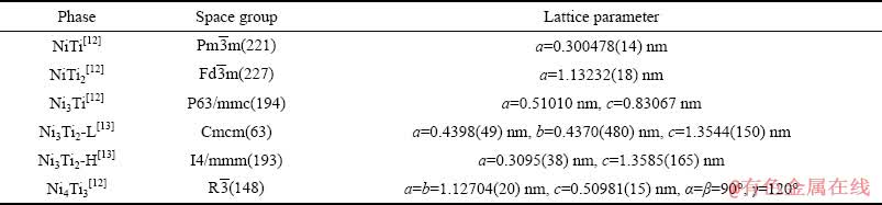 Table 1 Space group and lattice parameters of each phase in NiTi40 alloy[12-13]
