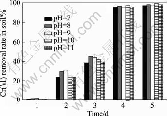 图5 初始培养基不同pH值条件下土壤Cr(Ⅵ)的去除率